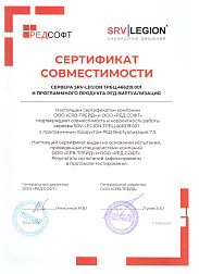 сертификат совместимости сервера SRV-LEGION ТРБЦ.466219.001 и програмного продукта РЕД Виртуализация